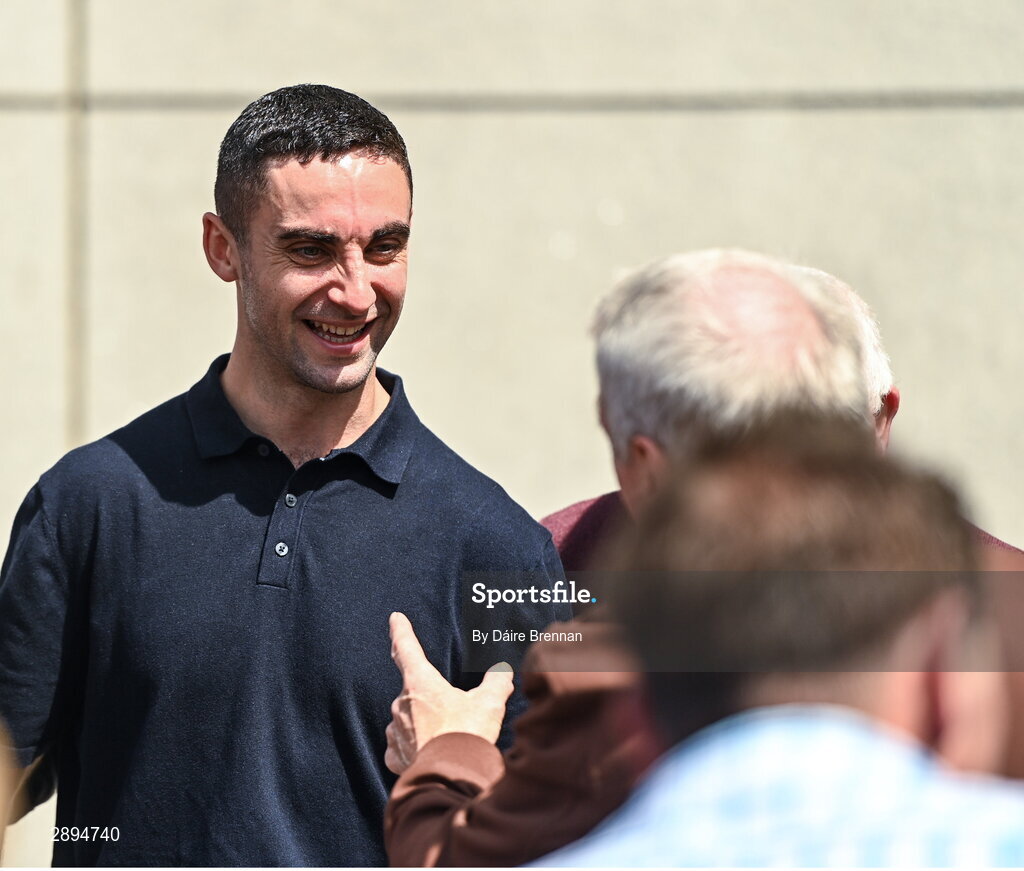 28 July 2024; 9 time All-Ireland winner James McCarthy with supporters ahead of the GAA Football All-Ireland Senior Championship Final match between Armagh and Galway at Croke Park in Dublin. Photo by Daire Brennan/Sportsfile