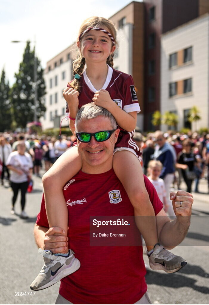 28 July 2024; Galway supporters Greg and Sarah Leonard, aged 7, from Furbo, Galway, ahead of the GAA Football All-Ireland Senior Championship Final match between Armagh and Galway at Croke Park in Dublin. Photo by Daire Brennan/Sportsfile