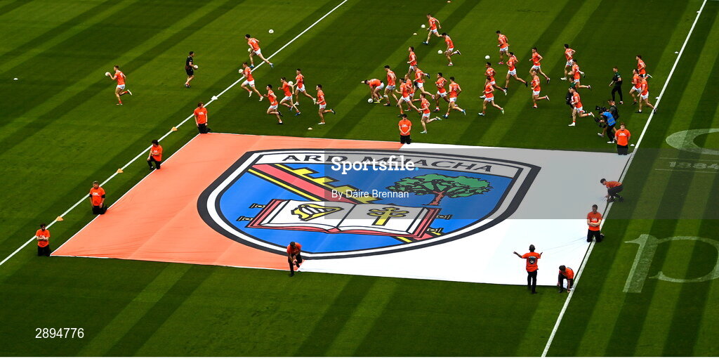 28 July 2024; The Armagh team break from the team photo ahead of the GAA Football All-Ireland Senior Championship Final match between Armagh and Galway at Croke Park in Dublin. Photo by Daire Brennan/Sportsfile