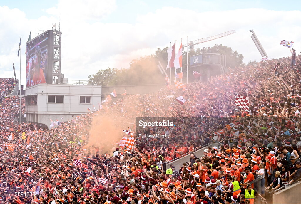28 July 2024; Supporters on Hill 16 before the GAA Football All-Ireland Senior Championship Final match between Armagh and Galway at Croke Park in Dublin. Photo by Harry Murphy/Sportsfile