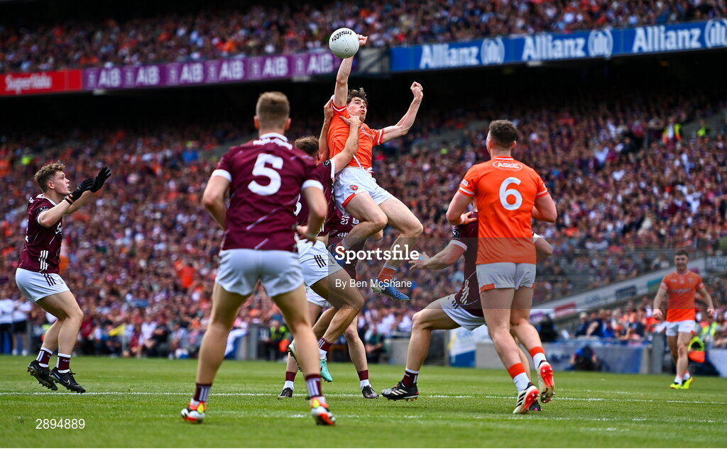 28 July 2024; Andrew Murnin of Armagh punches a high-ball during the GAA Football All-Ireland Senior Championship Final match between Armagh and Galway at Croke Park in Dublin. Photo by Ben McShane/Sportsfile