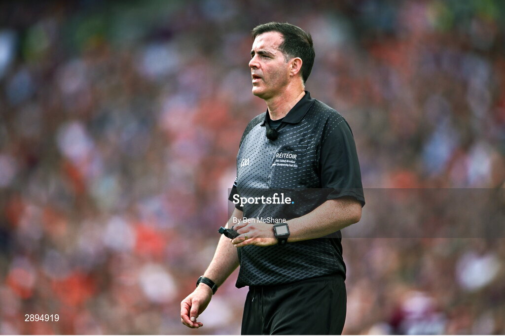 28 July 2024; Referee Sean Hurson during the GAA Football All-Ireland Senior Championship Final match between Armagh and Galway at Croke Park in Dublin. Photo by Ben McShane/Sportsfile