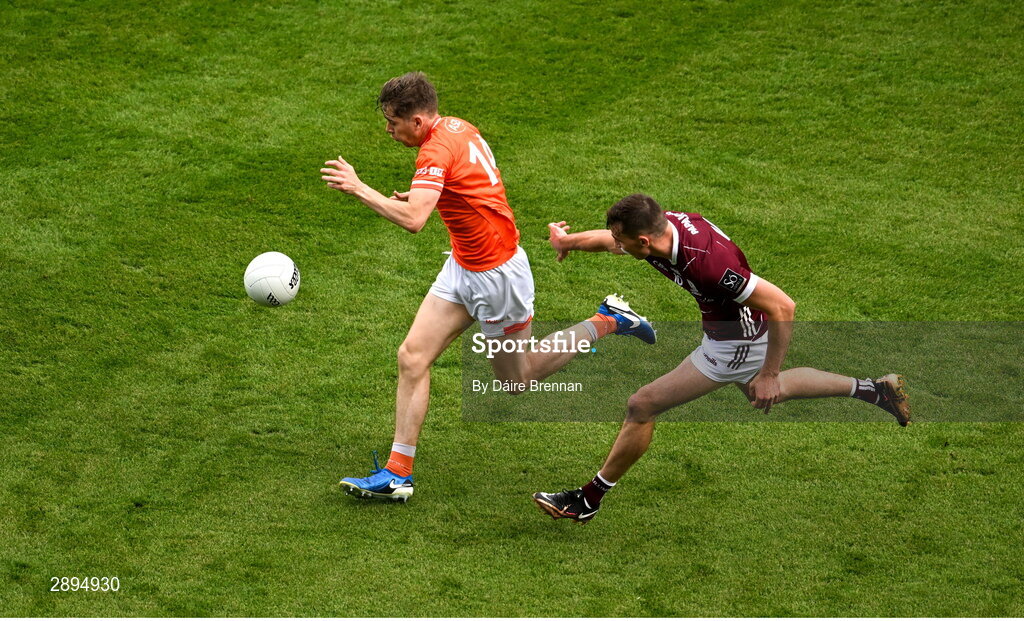 28 July 2024; Andrew Murnin of Armagh in action against Matthew Tierney of Galway during the GAA Football All-Ireland Senior Championship Final match between Armagh and Galway at Croke Park in Dublin. Photo by Daire Brennan/Sportsfile