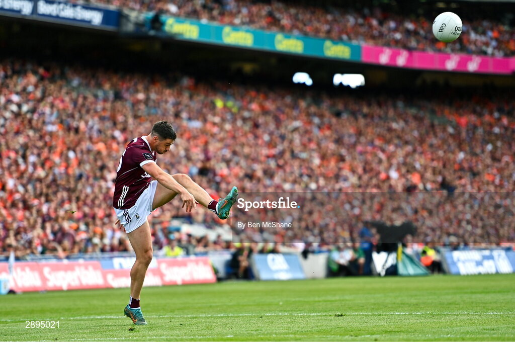 28 July 2024; Shane Walsh of Galway kicks a point from a free during the GAA Football All-Ireland Senior Championship Final match between Armagh and Galway at Croke Park in Dublin. Photo by Ben McShane/Sportsfile