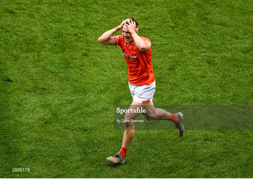 28 July 2024; Rian O'Neill of Armagh celebrates at the final whistle of the GAA Football All-Ireland Senior Championship Final match between Armagh and Galway at Croke Park in Dublin. Photo by Daire Brennan/Sportsfile