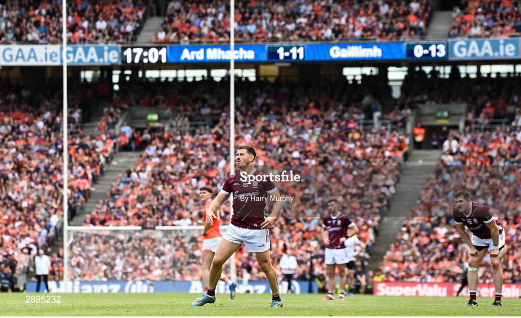 28 July 2024; Shane Walsh of Galway reacts to dropping a free short in the final minutes of the GAA Football All-Ireland Senior Championship Final match between Armagh and Galway at Croke Park in Dublin. Photo by Harry Murphy/Sportsfile