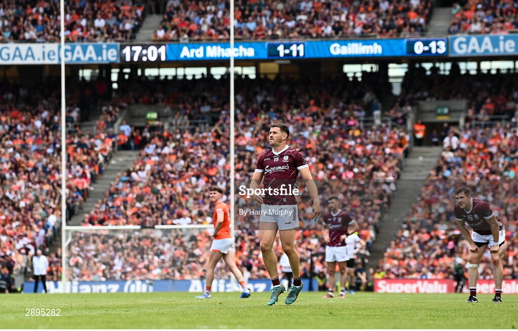 28 July 2024; Shane Walsh of Galway reacts to dropping a free short in the final minutes of the GAA Football All-Ireland Senior Championship Final match between Armagh and Galway at Croke Park in Dublin. Photo by Harry Murphy/Sportsfile