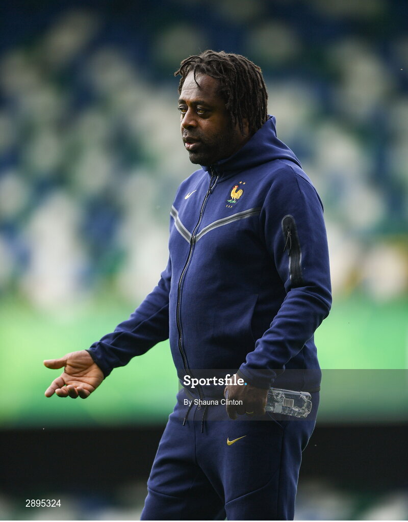 28 July 2024; France manager Bernard Diomede before the UEFA European U19 Championship finals match between Spain and France at the National Football Stadium at Windsor Park, Belfast. Photo by Shauna Clinton/Sportsfile
