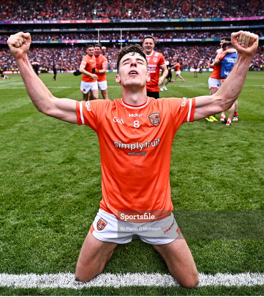 28 July 2024; Niall Grimley of Armagh celebrates after his side's victory in the GAA Football All-Ireland Senior Championship Final match between Armagh and Galway at Croke Park in Dublin. Photo by Piaras Ó Mídheach/Sportsfile