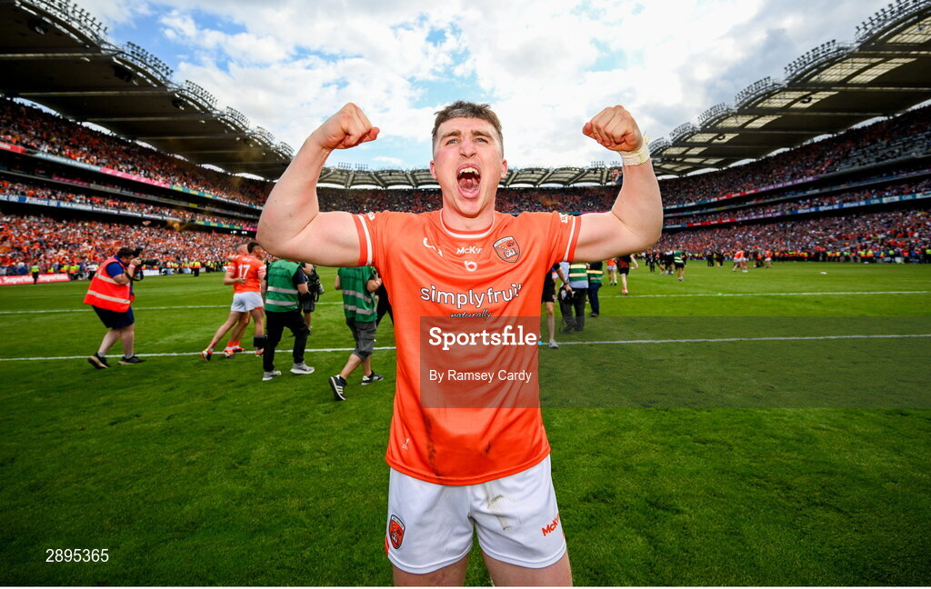 28 July 2024; Tiernan Kelly of Armagh celebrates after the GAA Football All-Ireland Senior Championship Final match between Armagh and Galway at Croke Park in Dublin. Photo by Ramsey Cardy/Sportsfile