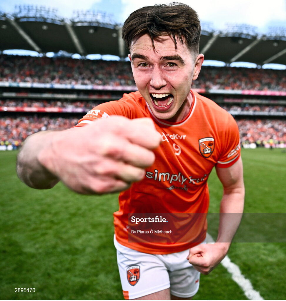 28 July 2024; Ben Crealey of Armagh celebrates after his side's victory in the GAA Football All-Ireland Senior Championship Final match between Armagh and Galway at Croke Park in Dublin. Photo by Piaras Ó Mídheach/Sportsfile
