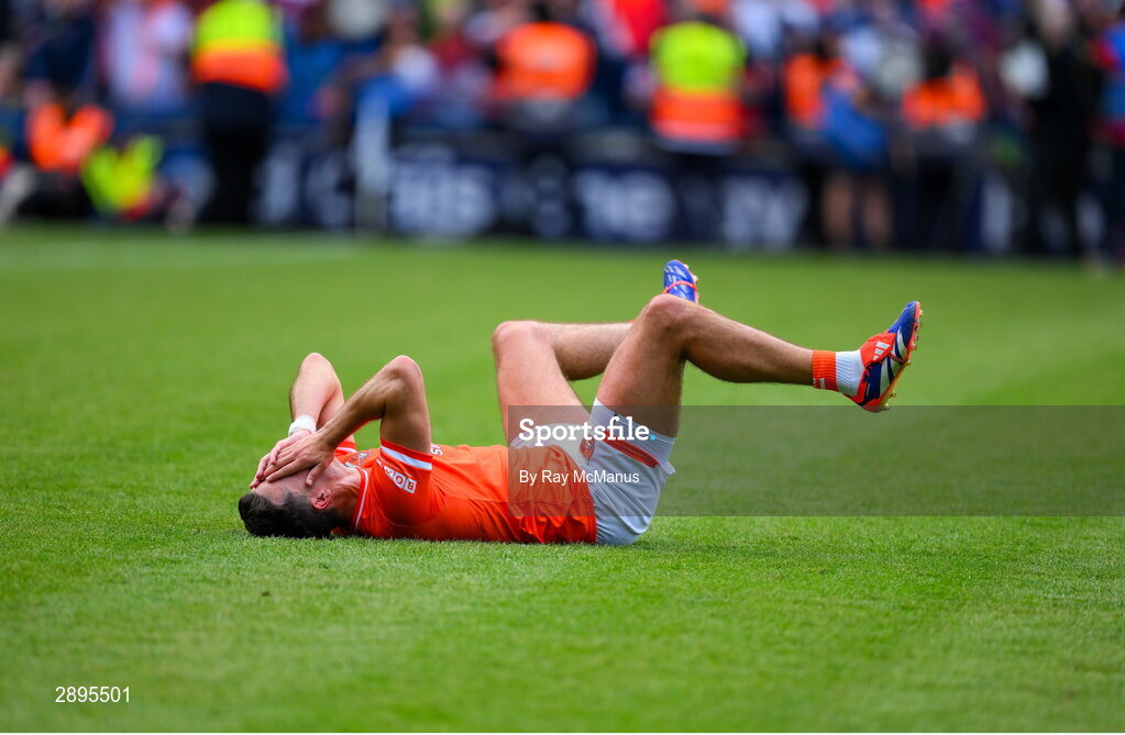 28 July 2024; Stefan Campbell of Armagh at the final whistle the GAA Football All-Ireland Senior Championship Final match between Armagh and Galway at Croke Park in Dublin. Photo by Ray McManus/Sportsfile