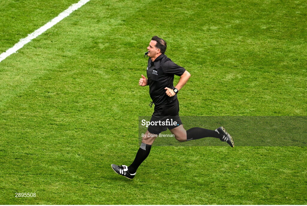 28 July 2024; Referee Sean Hurson during the GAA Football All-Ireland Senior Championship Final match between Armagh and Galway at Croke Park in Dublin. Photo by Daire Brennan/Sportsfile