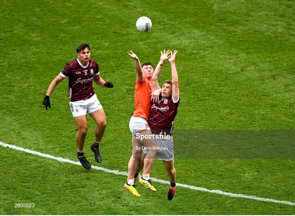 28 July 2024; Oisin Conaty of Armagh in action against Dylan McHugh of Galway during the GAA Football All-Ireland Senior Championship Final match between Armagh and Galway at Croke Park in Dublin. Photo by Daire Brennan/Sportsfile