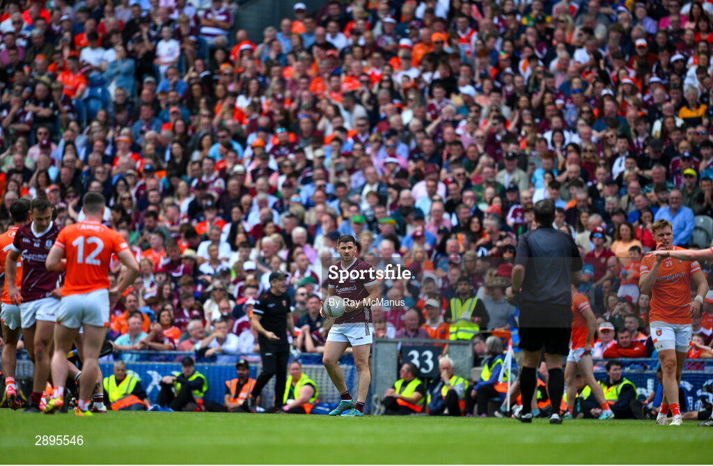 28 July 2024; Shane Walsh of Galway prepares to kick a late free during the GAA Football All-Ireland Senior Championship Final match between Armagh and Galway at Croke Park in Dublin. Photo by Ray McManus/Sportsfile