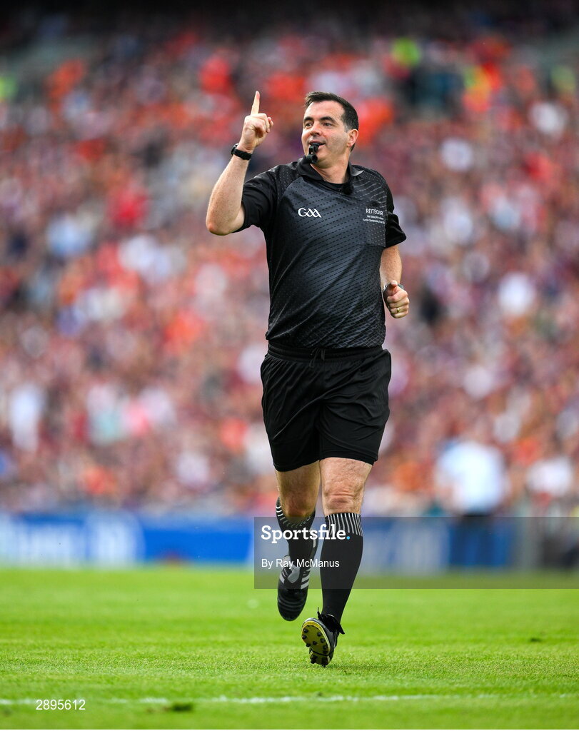 28 July 2024; Referee Sean Hurson during the GAA Football All-Ireland Senior Championship Final match between Armagh and Galway at Croke Park in Dublin. Photo by Ray McManus/Sportsfile