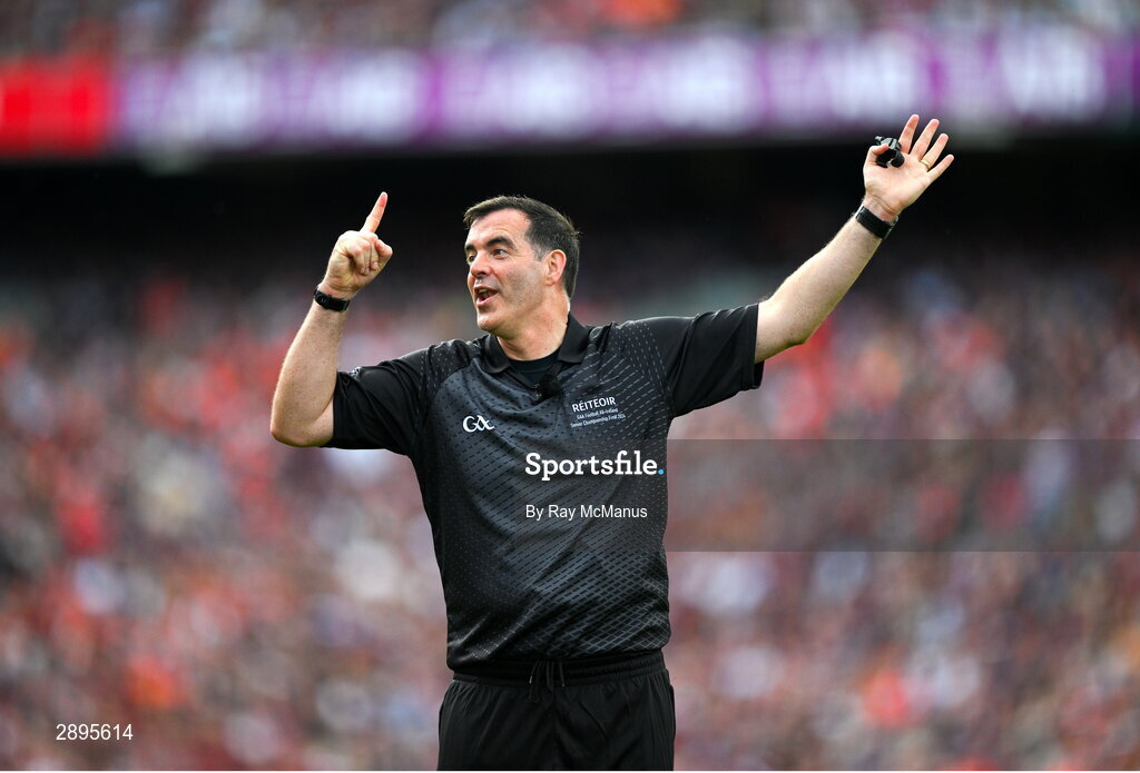 28 July 2024; Referee Sean Hurson during the GAA Football All-Ireland Senior Championship Final match between Armagh and Galway at Croke Park in Dublin. Photo by Ray McManus/Sportsfile