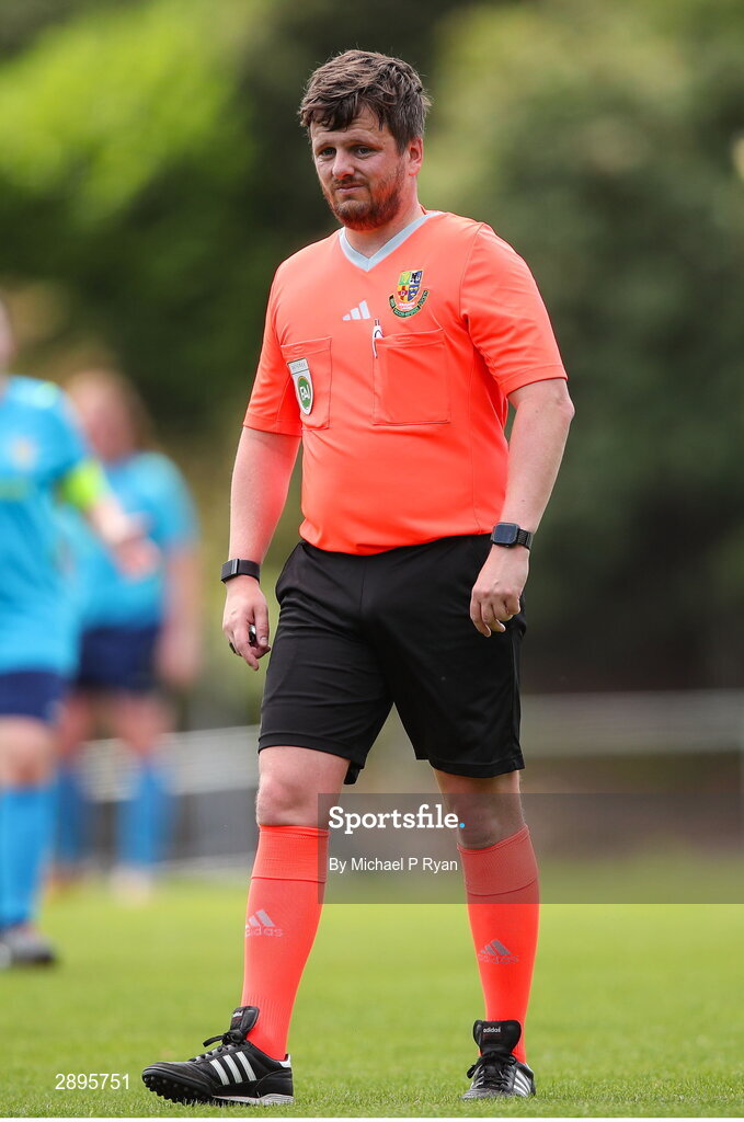 28 July 2024; Referee Eric McCann during the FAI Women's Amateur Cup Final 2024 match between Whitehall Rangers and Terenure Rangers at UCD Bowl in Dublin. Photo by Michael P Ryan/Sportsfile