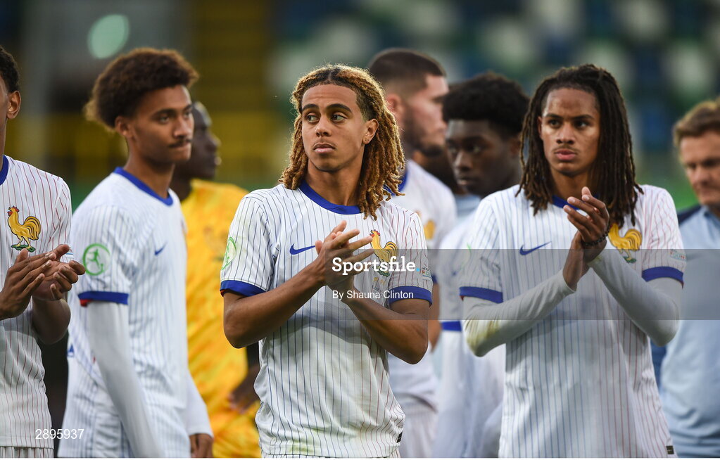 28 July 2024; Saimon Nadélia Bouabré of France after his side's defeat in the UEFA European U19 Championship finals match between Spain and France at the National Football Stadium at Windsor Park, Belfast. Photo by Shauna Clinton/Sportsfile
