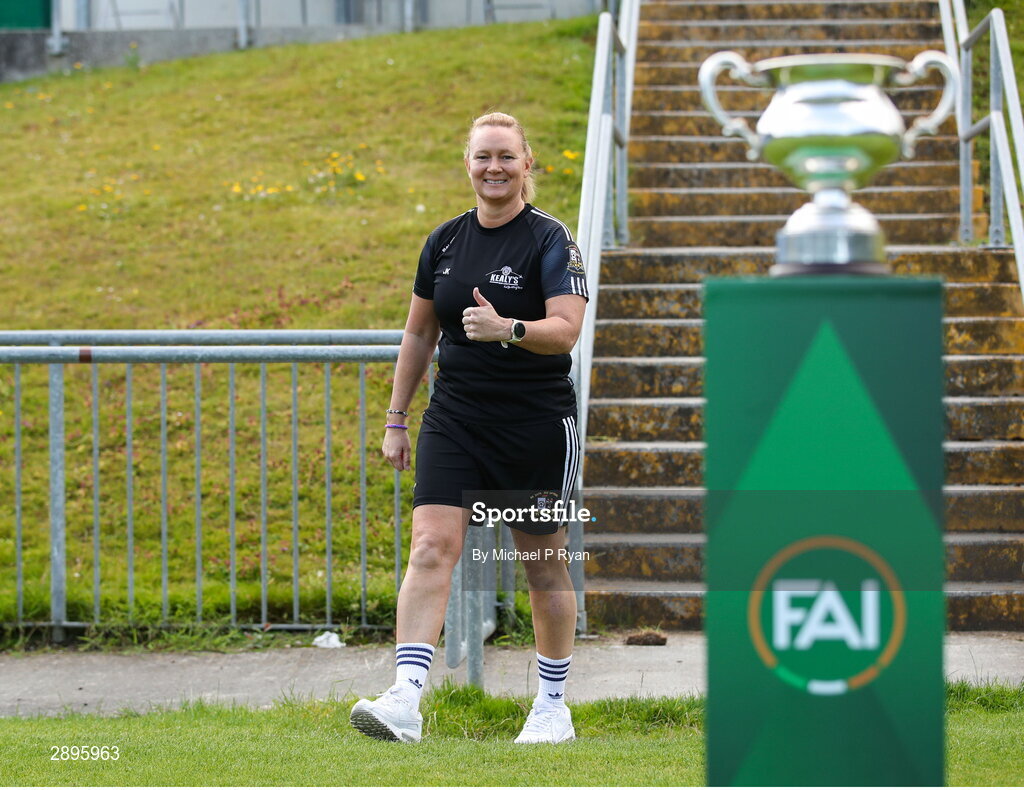 28 July 2024; Whitehall Rangers goalkeeper Jennifer Kett before the FAI Women's Amateur Cup Final 2024 match between Whitehall Rangers and Terenure Rangers at UCD Bowl in Dublin. Photo by Michael P Ryan/Sportsfile