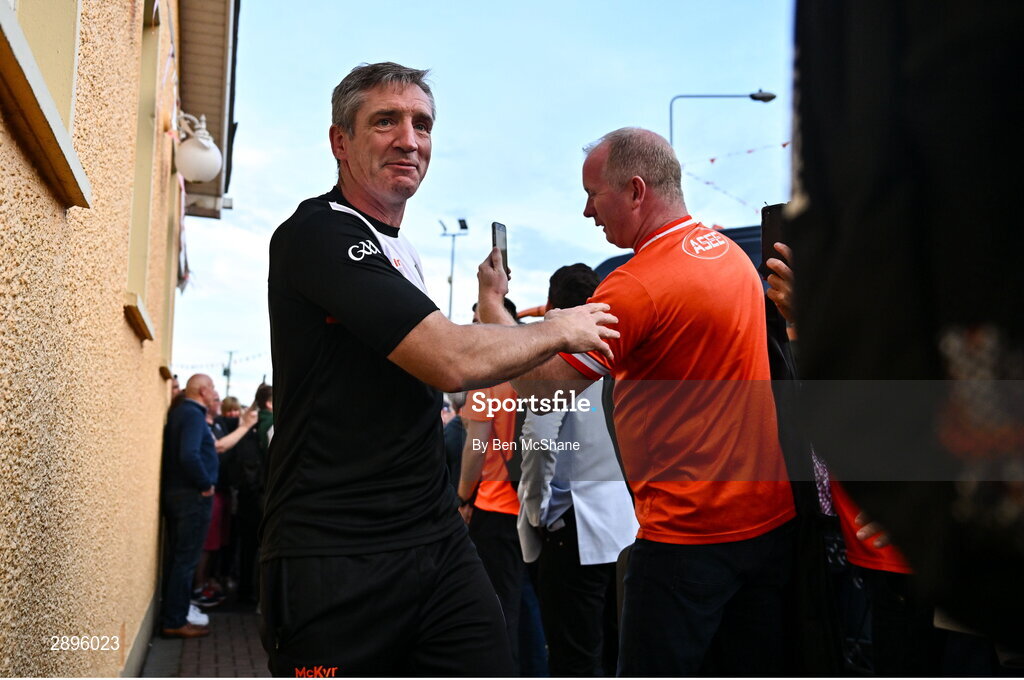 28 July 2024; Armagh manager Kieran McGeeney at the Armagh team homecoming to their team hotel at the Carrickdale Hotel in Dundalk, Louth, after their victory over Galway in the GAA Football All-Ireland Senior Championship Final match at Croke Park in Dublin earlier. Photo by Ben McShane/Sportsfile