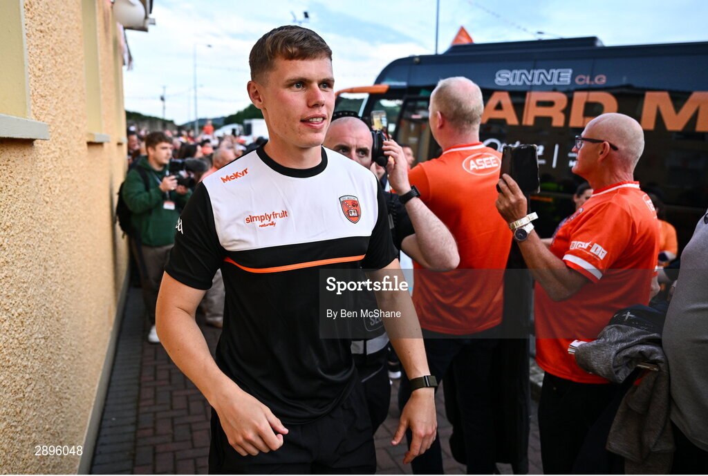 28 July 2024; Oisin O'Neill of Armagh at the Armagh team homecoming to their team hotel at the Carrickdale Hotel in Dundalk, Louth, after their victory over Galway in the GAA Football All-Ireland Senior Championship Final match at Croke Park in Dublin earlier. Photo by Ben McShane/Sportsfile