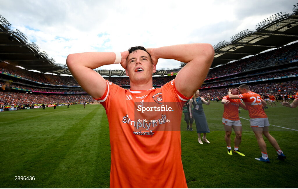 28 July 2024; Aaron McKay of Armagh celebrates after the GAA Football All-Ireland Senior Championship Final match between Armagh and Galway at Croke Park in Dublin. Photo by Ramsey Cardy/Sportsfile
