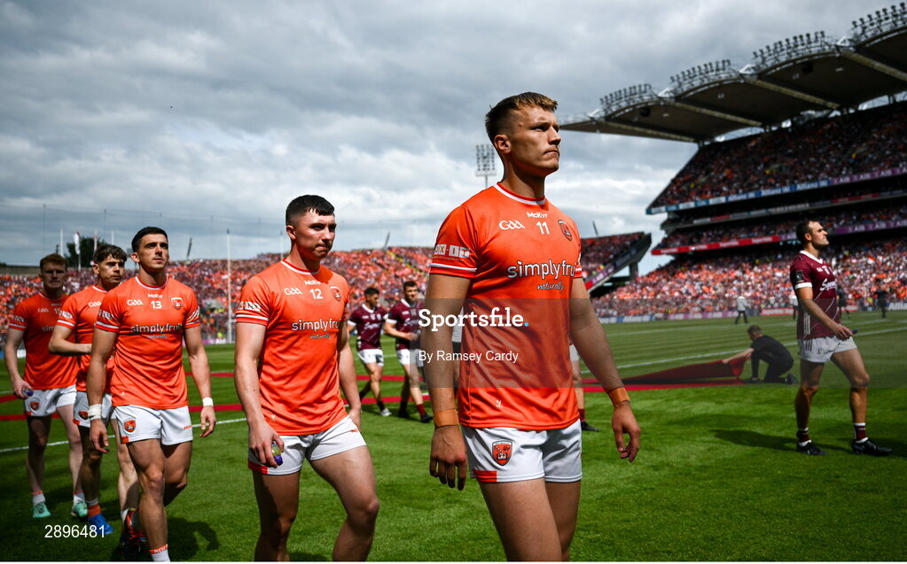 28 July 2024; Rian O'Neill of Armagh before the GAA Football All-Ireland Senior Championship Final match between Armagh and Galway at Croke Park in Dublin. Photo by Ramsey Cardy/Sportsfile