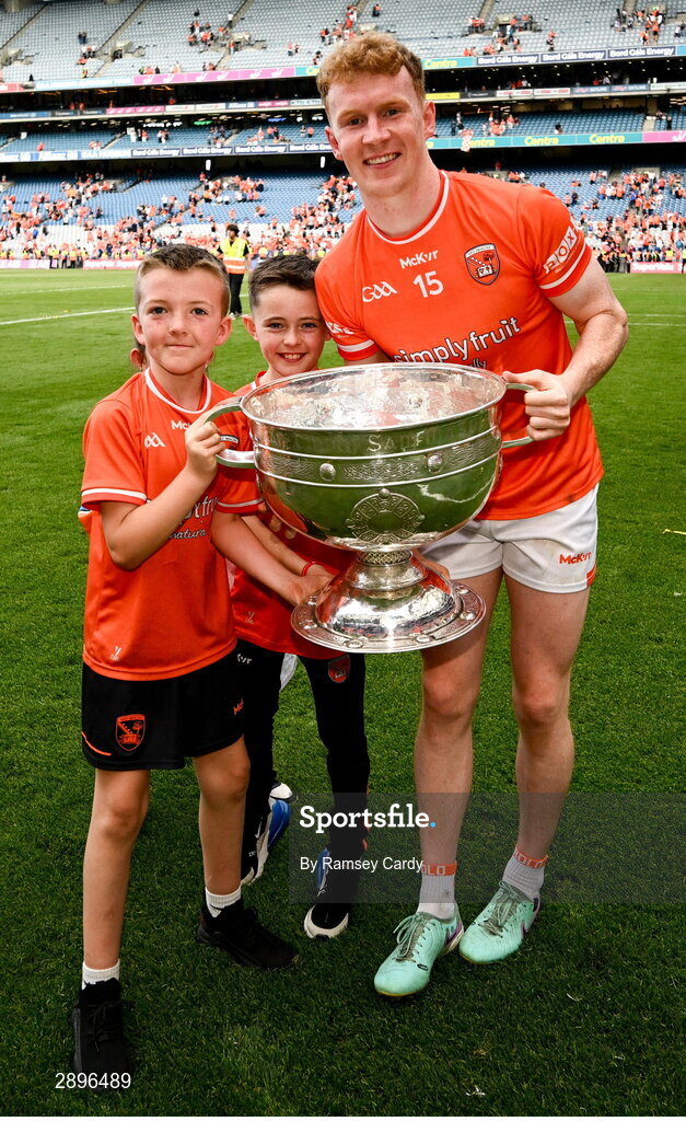 28 July 2024; Conor Turbitt of Armagh with the Sam Maguire Cup after the GAA Football All-Ireland Senior Championship Final match between Armagh and Galway at Croke Park in Dublin. Photo by Ramsey Cardy/Sportsfile