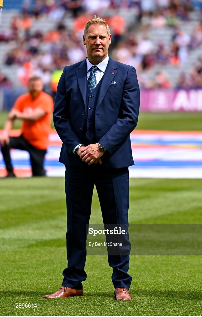 28 July 2024; Captain Graham Geraghty of the 1999 All-Ireland winning Meath football jubilee team who were honoured before the GAA Football All-Ireland Senior Championship Final match between Armagh and Galway at Croke Park in Dublin. Photo by Ben McShane/Sportsfile