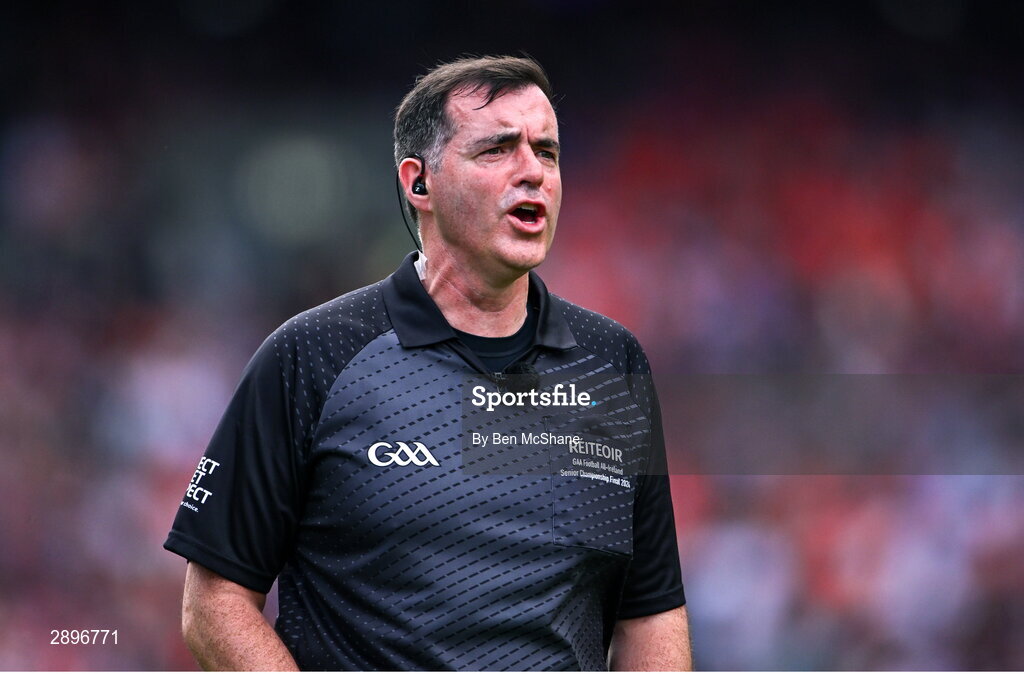 28 July 2024; Referee Sean Hurson during the GAA Football All-Ireland Senior Championship Final match between Armagh and Galway at Croke Park in Dublin. Photo by Ben McShane/Sportsfile