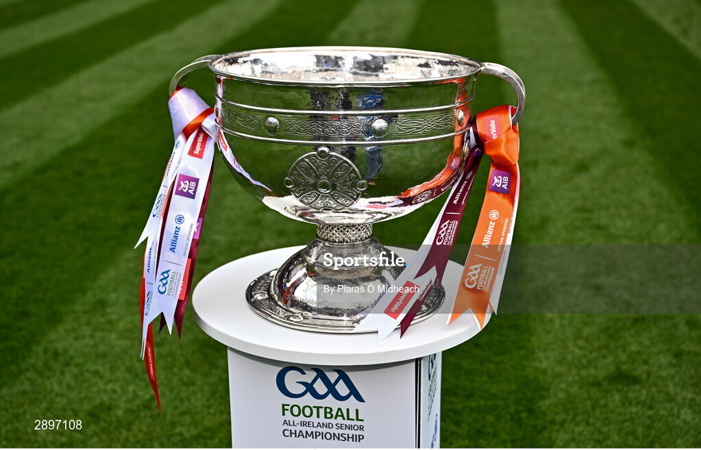 28 July 2024; The Sam Maguire Cup before the GAA Football All-Ireland Senior Championship Final match between Armagh and Galway at Croke Park in Dublin. Photo by Piaras Ó Mídheach/Sportsfile