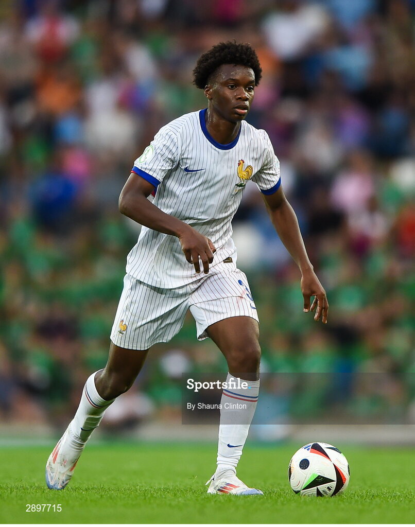 28 July 2024; Aboubaka Soumahoro of France during the UEFA European U19 Championship finals match between Spain and France at the National Football Stadium at Windsor Park, Belfast. Photo by Shauna Clinton/Sportsfile