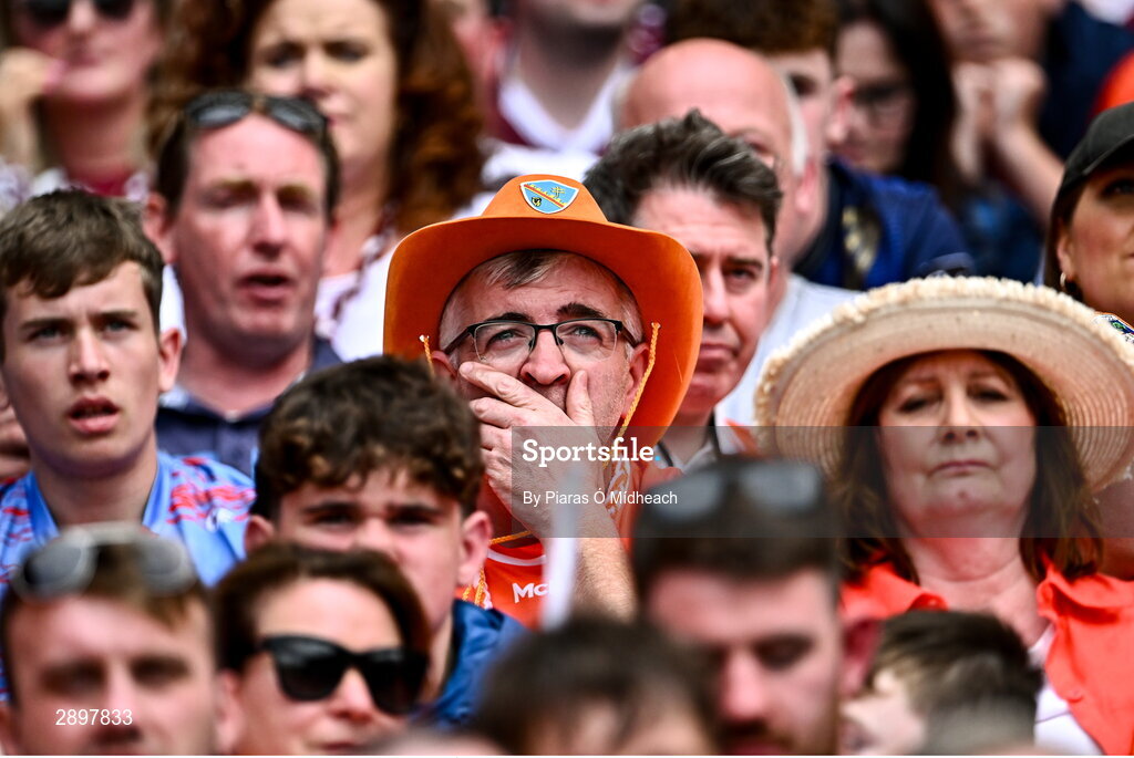 28 July 2024; An Armagh supporter during the GAA Football All-Ireland Senior Championship Final match between Armagh and Galway at Croke Park in Dublin. Photo by Piaras Ó Mídheach/Sportsfile