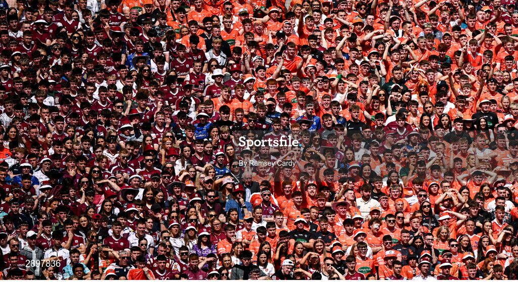 28 July 2024; Galway and Armagh supporters on Hill 16 during the GAA Football All-Ireland Senior Championship Final match between Armagh and Galway at Croke Park in Dublin. Photo by Ramsey Cardy/Sportsfile