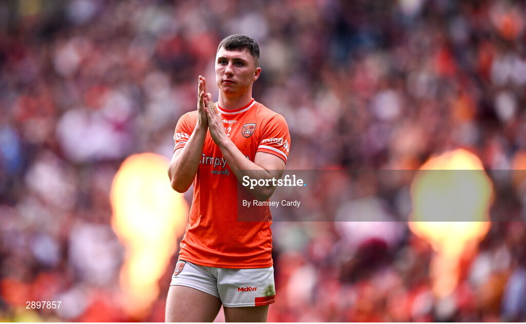 28 July 2024; Oisin Conaty of Armagh during the GAA Football All-Ireland Senior Championship Final match between Armagh and Galway at Croke Park in Dublin. Photo by Ramsey Cardy/Sportsfile