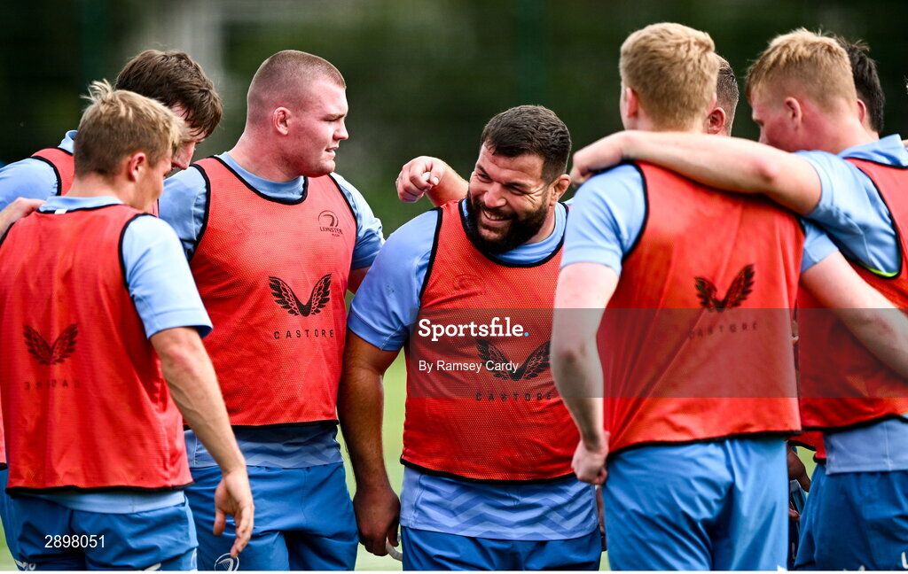 31 July 2024; Jack Boyle and Rabah Slimani during a Leinster rugby training session at UCD in Dublin. Photo by Ramsey Cardy/Sportsfile