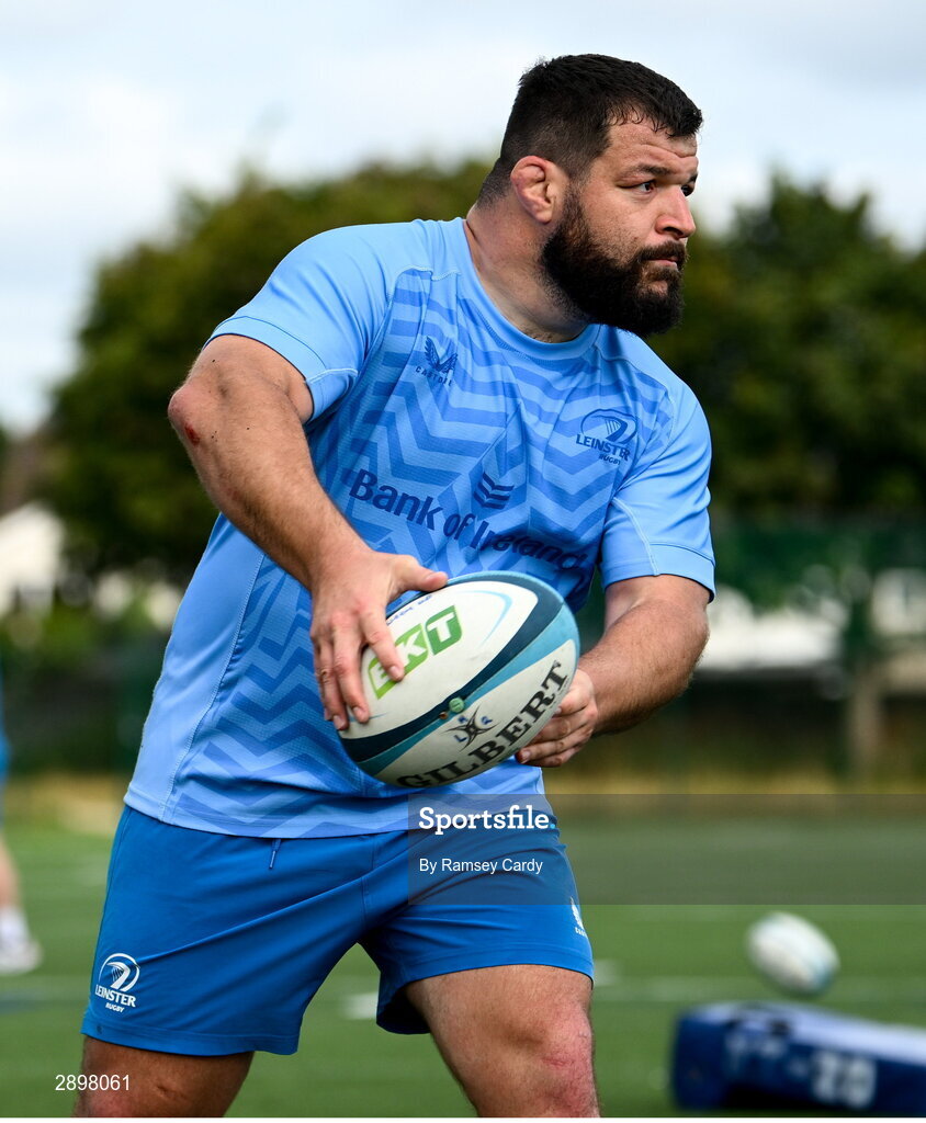 31 July 2024; Rabah Slimani during a Leinster rugby training session at UCD in Dublin. Photo by Ramsey Cardy/Sportsfile