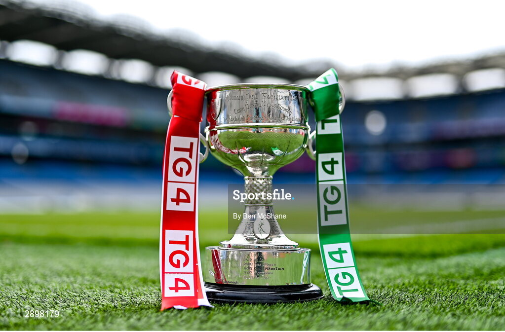 30 July 2024; In attendance during the captains day ahead of the 2024 TG4 All-Ireland Ladies Football Championship Finals at Croke Park in Dublin is the Junior Championship cup. Photo by Ben McShane/Sportsfile