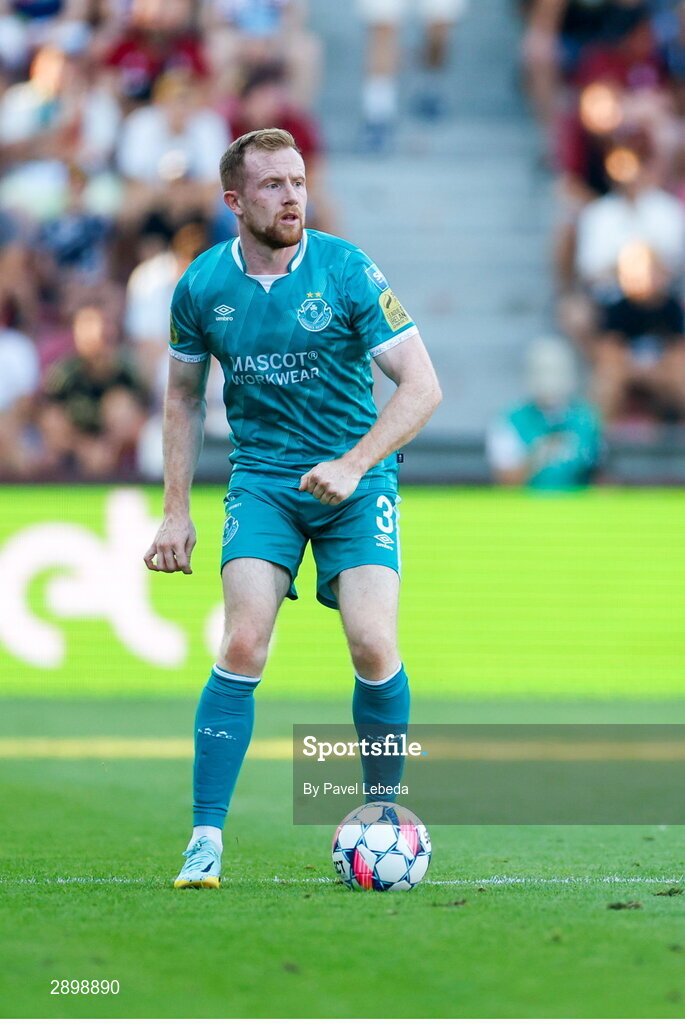 30 July 2024; Sean Hoare of Shamrock Rovers during the UEFA Champions League Second Qualifying Round second leg match between Sparta Prague and Shamrock Rovers at Letná Stadium in Prague, Czechia. Photo by Pavel Lebeda/Sportsfile