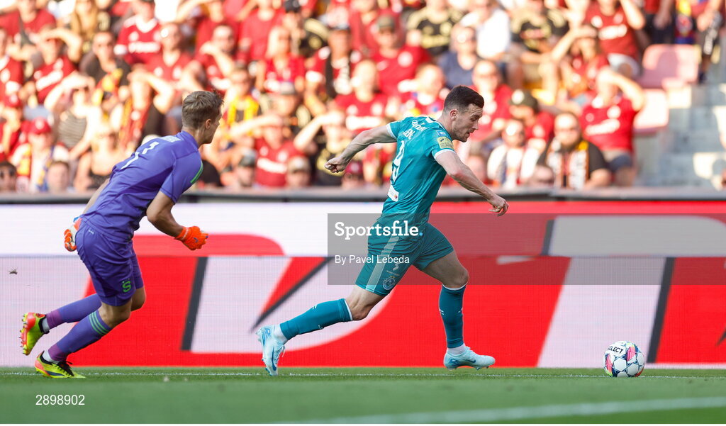 30 July 2024; Aaron Greene of Shamrock Rovers on his way to score his side's first goal during the UEFA Champions League Second Qualifying Round second leg match between Sparta Prague and Shamrock Rovers at Letná Stadium in Prague, Czechia. Photo by Pavel Lebeda/Sportsfile