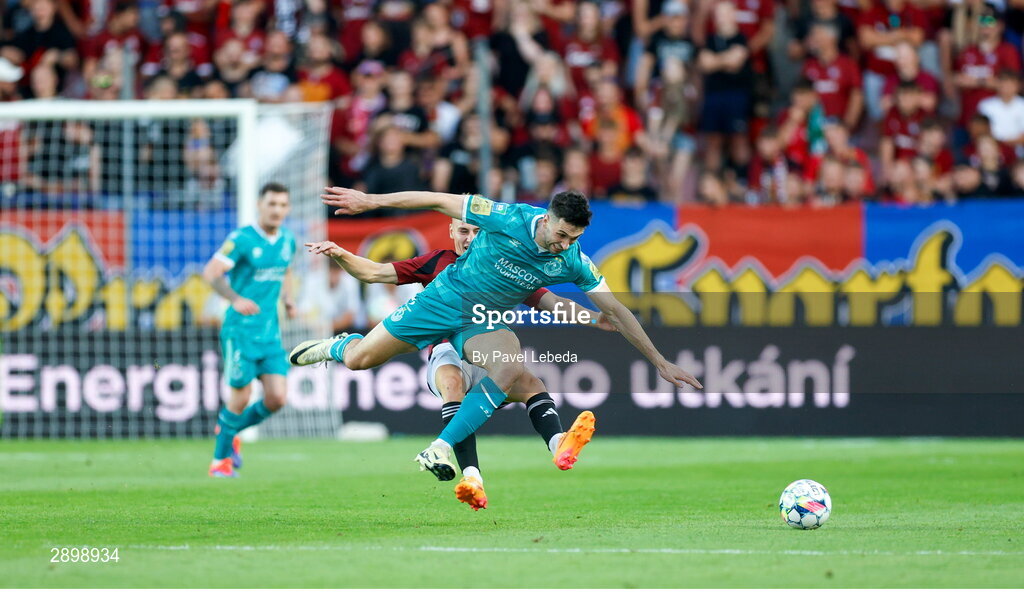 30 July 2024; Neil Farrugia of Shamrock Rovers in action during the UEFA Champions League Second Qualifying Round second leg match between Sparta Prague and Shamrock Rovers at Letná Stadium in Prague, Czechia. Photo by Pavel Lebeda/Sportsfile