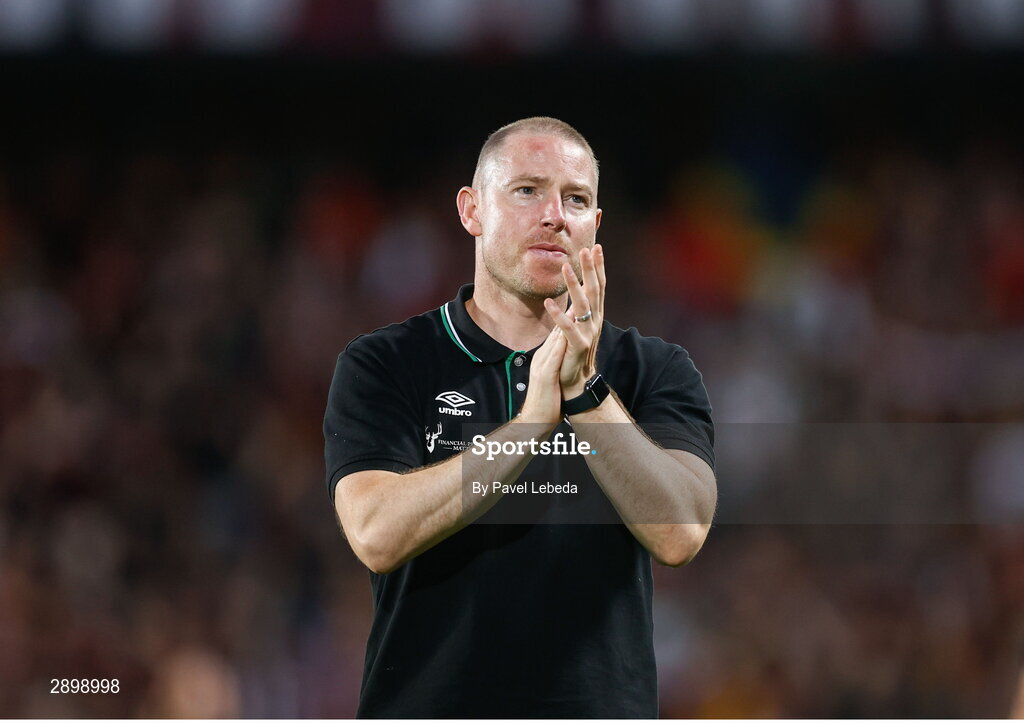 30 July 2024; Shamrock Rovers assistant coach Glenn Cronin after their side's defeat in the UEFA Champions League Second Qualifying Round second leg match between Sparta Prague and Shamrock Rovers at Letná Stadium in Prague, Czechia. Photo by Pavel Lebeda/Sportsfile