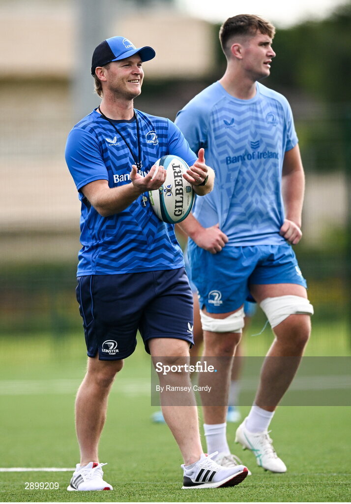 31 July 2024; Assistant coach Tyler Bleyendaal during a Leinster rugby training session at UCD in Dublin. Photo by Ramsey Cardy/Sportsfile