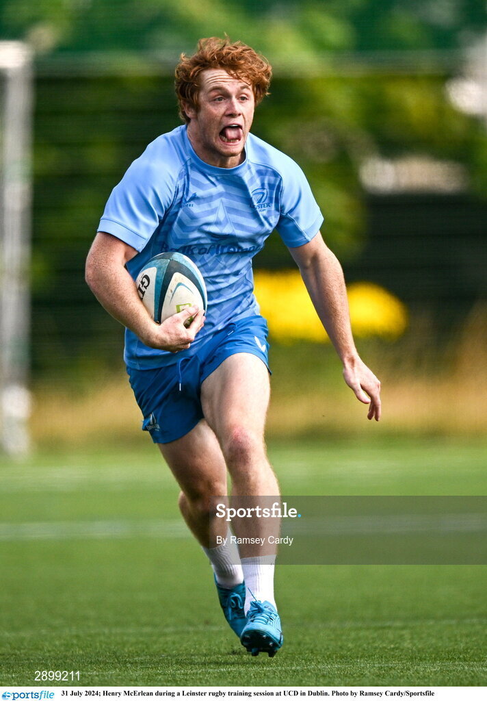 31 July 2024; Henry McErlean during a Leinster rugby training session at UCD in Dublin. Photo by Ramsey Cardy/Sportsfile