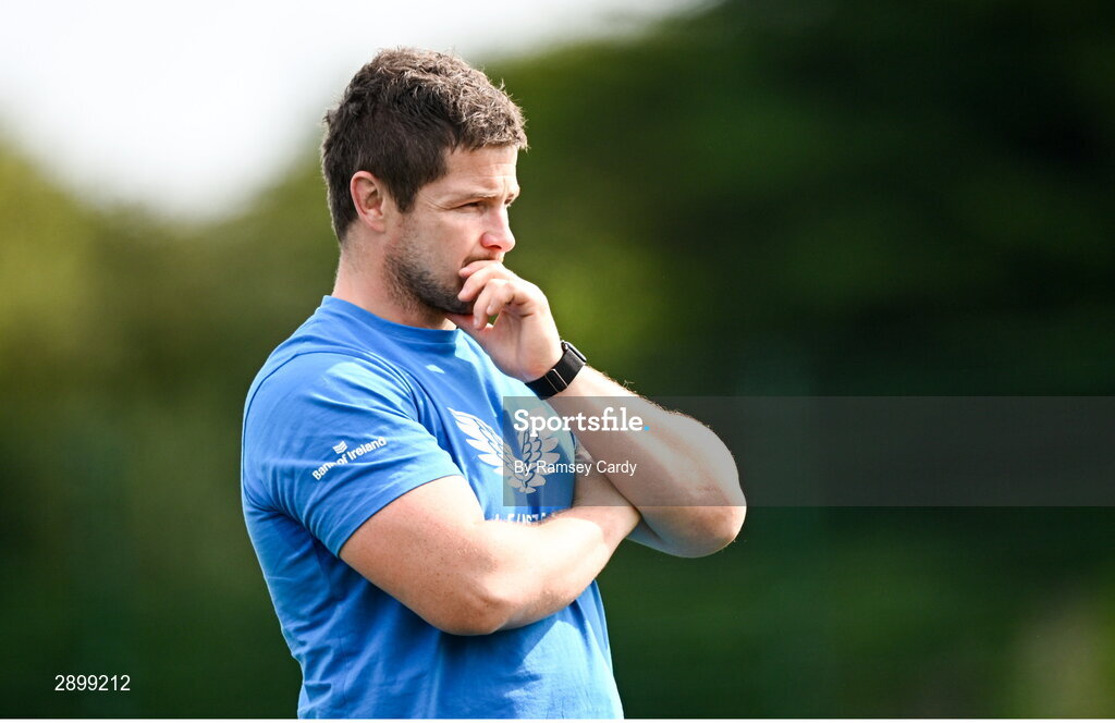 31 July 2024; Interim Academy Scrum Coach Jason Harris-Wright during a Leinster rugby training session at UCD in Dublin. Photo by Ramsey Cardy/Sportsfile