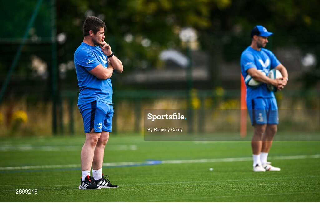 31 July 2024; Interim Academy Scrum Coach Jason Harris-Wright during a Leinster rugby training session at UCD in Dublin. Photo by Ramsey Cardy/Sportsfile