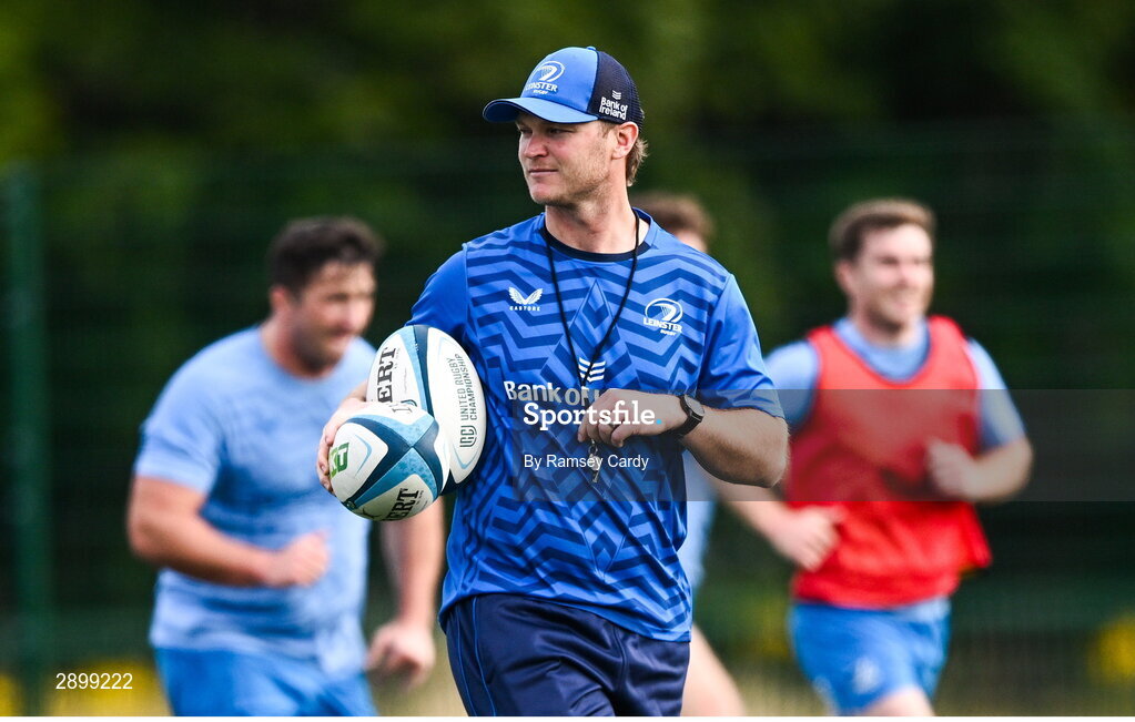 31 July 2024; Assistant coach Tyler Bleyendaal during a Leinster rugby training session at UCD in Dublin. Photo by Ramsey Cardy/Sportsfile