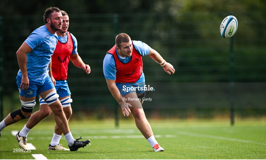31 July 2024; John McKee during a Leinster rugby training session at UCD in Dublin. Photo by Ramsey Cardy/Sportsfile
