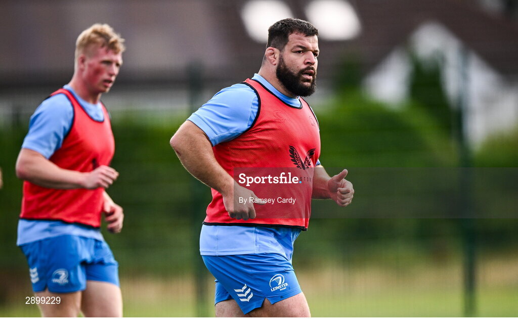 31 July 2024; Rabah Slimani during a Leinster rugby training session at UCD in Dublin. Photo by Ramsey Cardy/Sportsfile